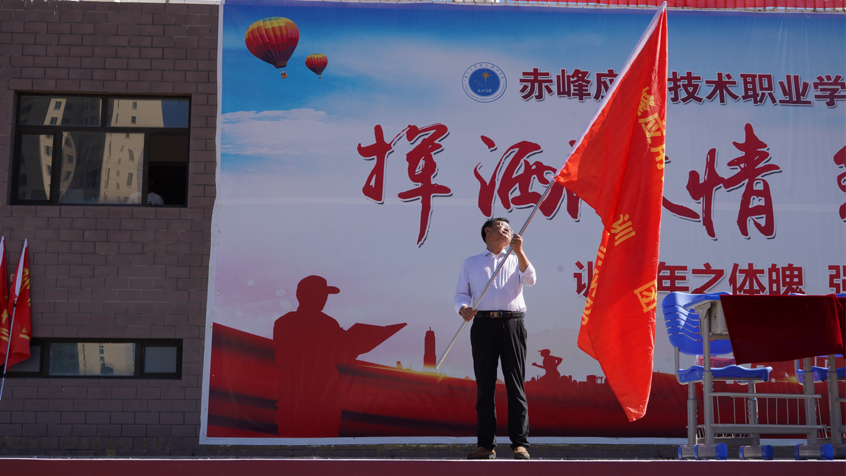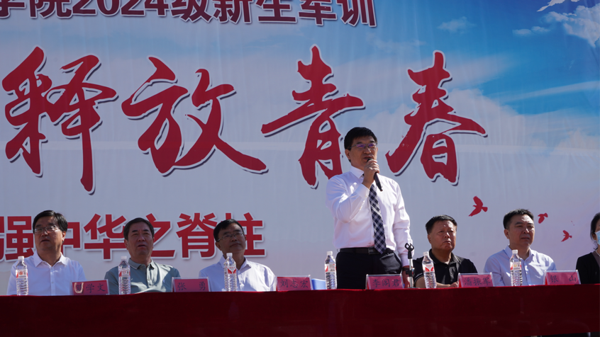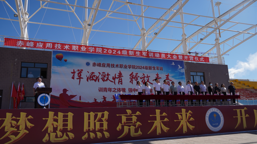 院长李阁君宣布赤峰应用技术职业学院2024级新生军训正式开始。