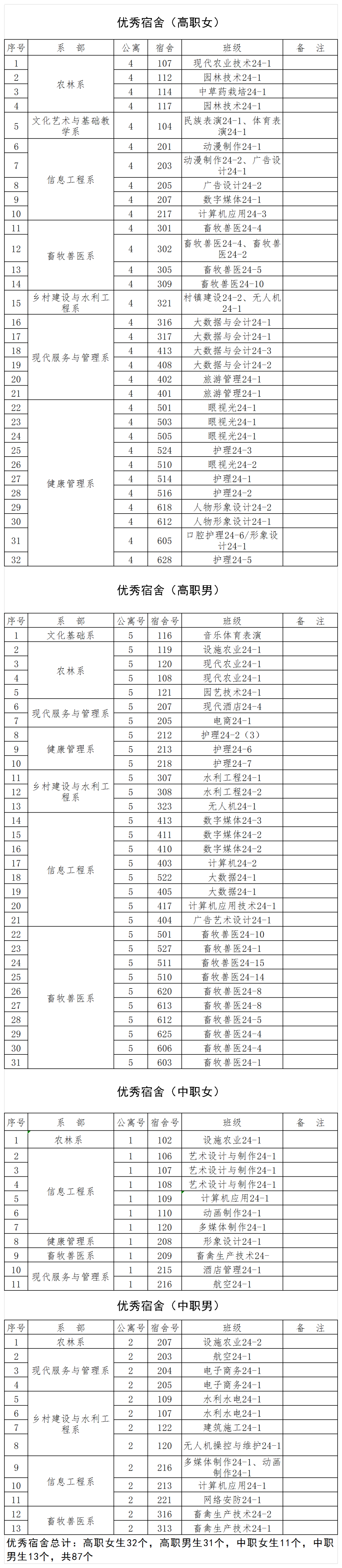 优秀宿舍名单