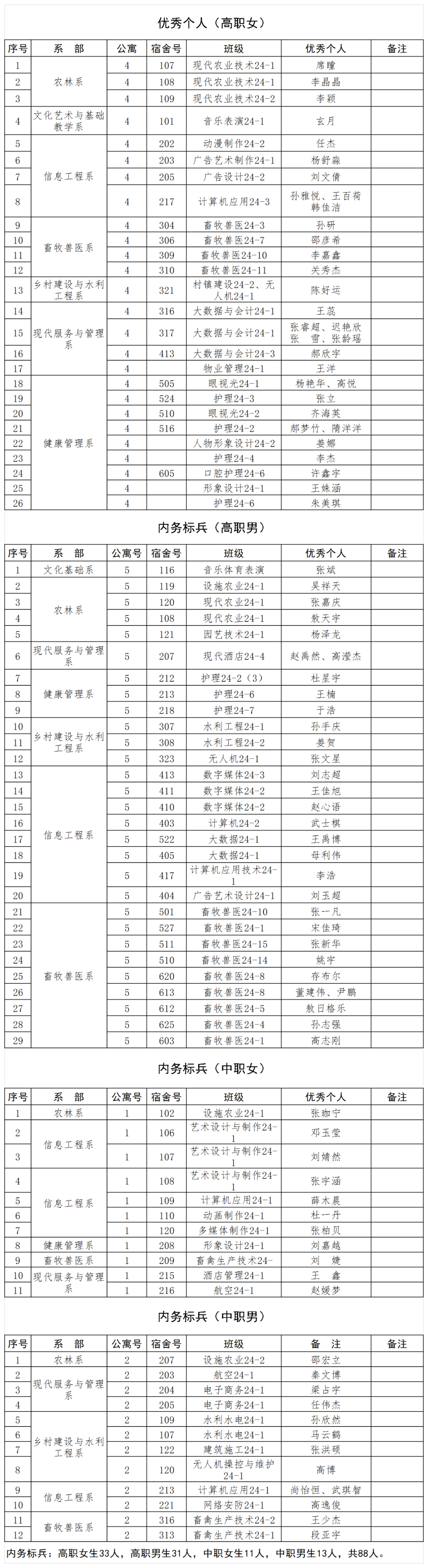 内务标兵名单