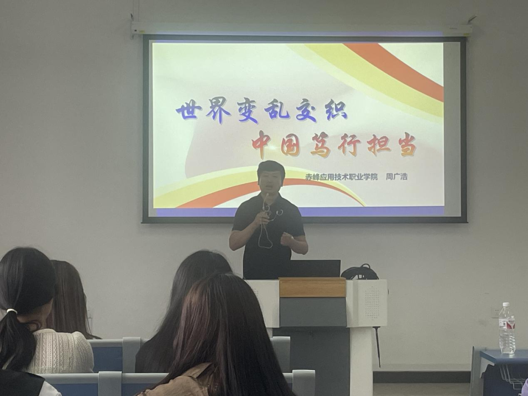 为贯彻落实铸魂育人、立德树人根本任务,6月20日,赤峰应用技术职业学院党委委员、副院长周广浩走上思政课讲台,为学生做一场形势与政策讲座。
