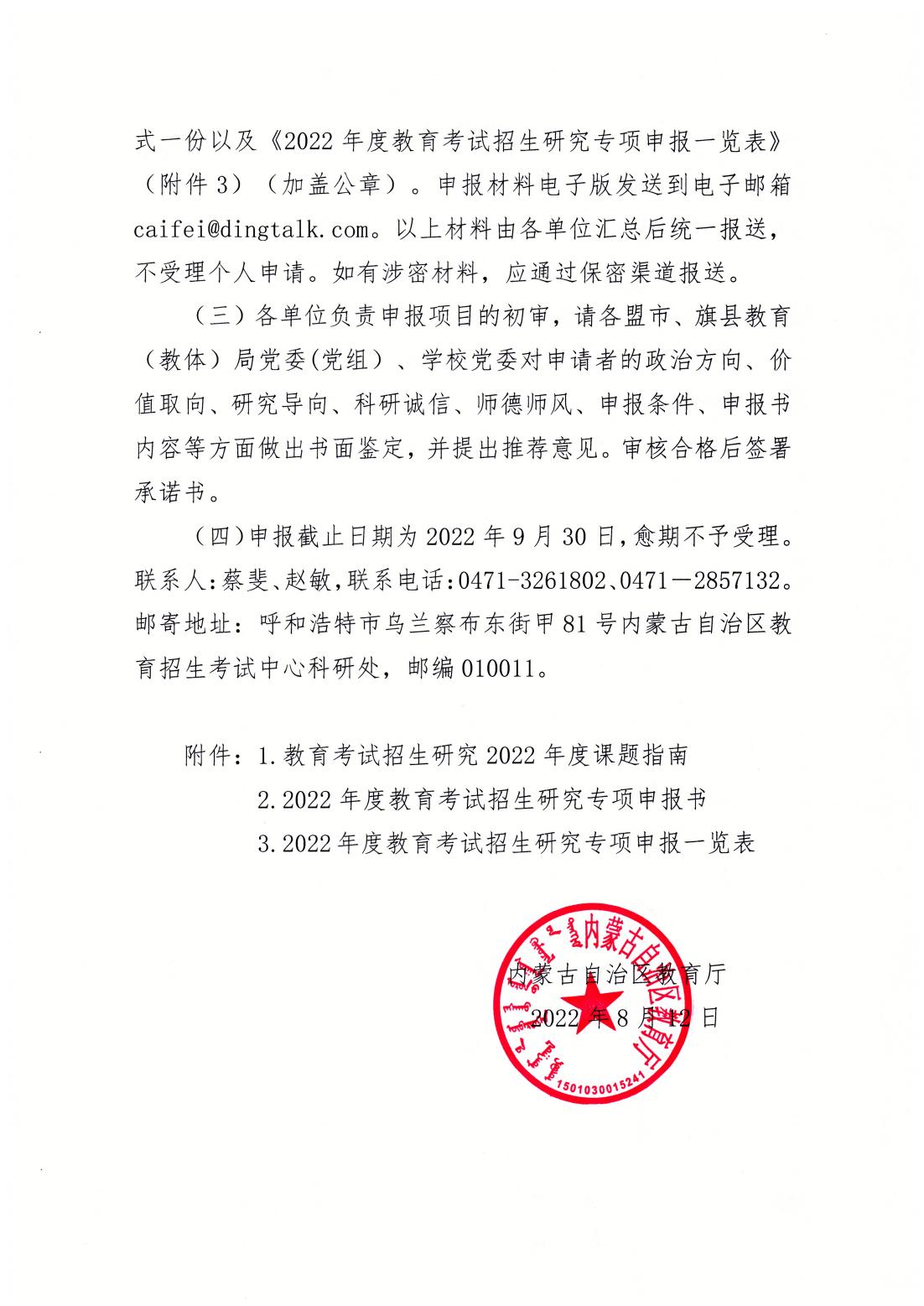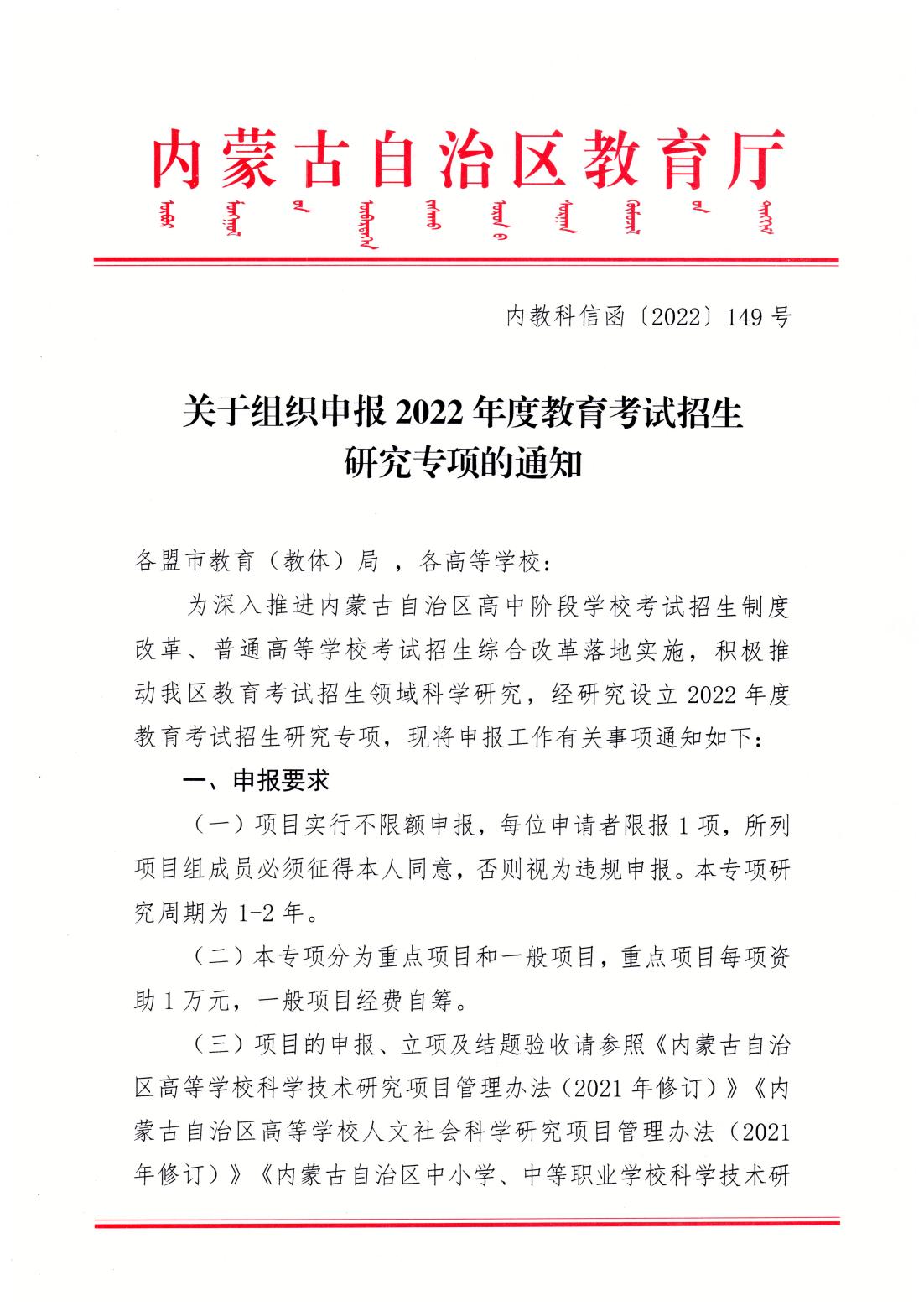 附件:关于组织申报2022年度教育考试招生研究专项的通知.pdf