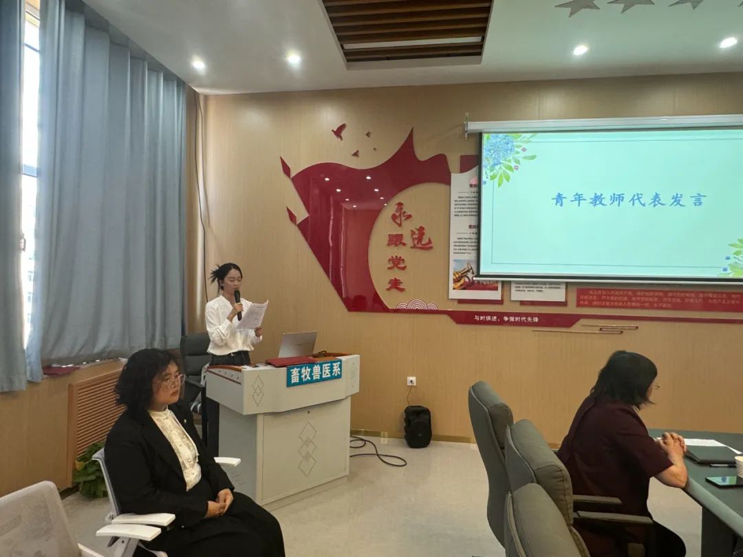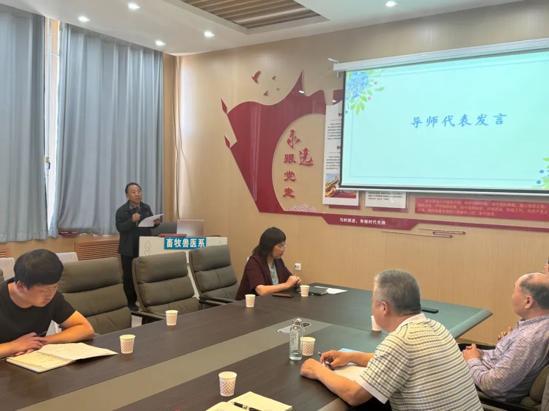 随后,优秀导师代表赵福军老师发言,在总结上学期青蓝工程成果的基础上,他对青年教师未来的工作提出了明确的要求和殷切的期望,他指出:青年教师们要继续发扬畜牧兽医系的优良传统,做专业、做学问、做育人,求实探索、踔厉奋发,为畜牧兽医系争取更大的光荣。